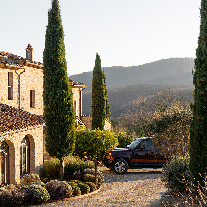 Stroll across the wide, paved courtyard, past the stone fountain and into this warm and welcoming house, with its light, modern interiors, cool sandstone floors and soaring ceilings. Outside, the glass-encased staircase tower is an architectural show-stopper, but what’s most striking about Arrighi is its surroundings – it’s hard to drag yourself away from those sweeping views over the estate, the Niccone valley and over to Tuscany