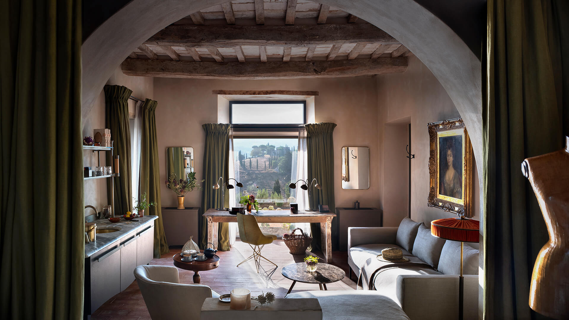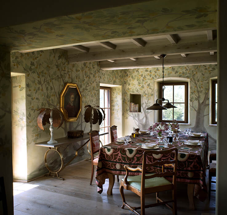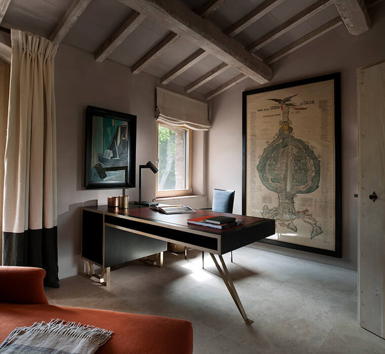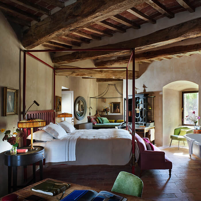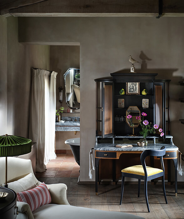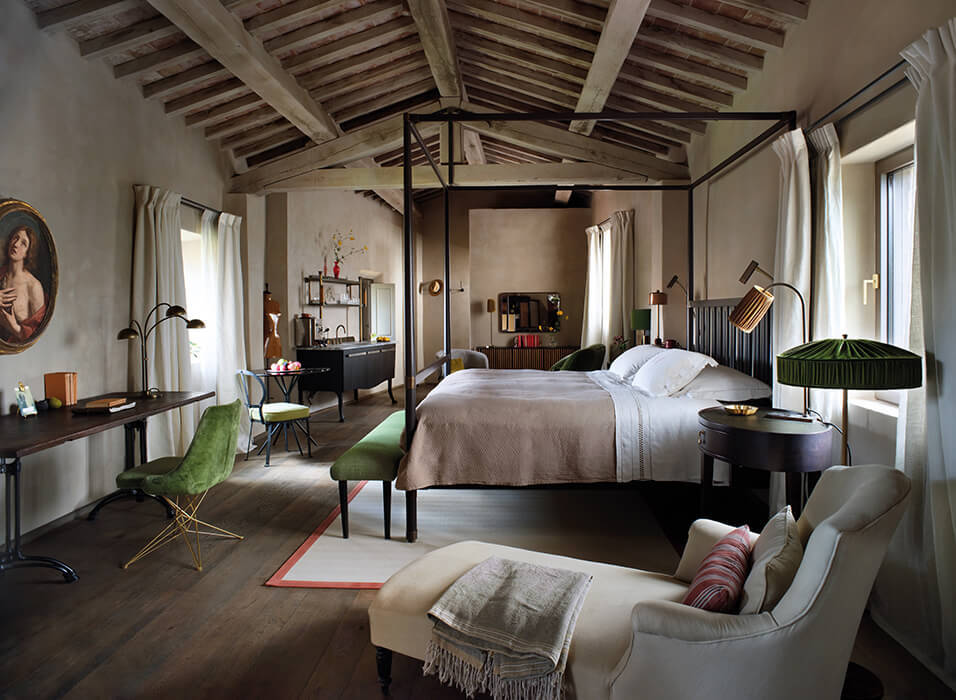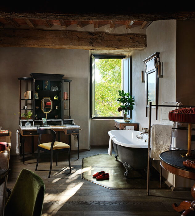 Custom-made marble washstands, finest linens, bespoke furniture, intricate stucco work – all is laid, built, hand-stitched and formed by a remarkable team of local artisans, some of the finest working in Italy today. How you, the owner, plans to use the space is key, the interiors are at the heart of a project from the very beginning. As well as creating bespoke pieces through B.B. for Reschio, Benedikt will source rare furniture and oil paintings from Italy’s best below-the-radar antiques markets, these are available for viewing and purchase from the Reschio Dealership at the Tabaccaia