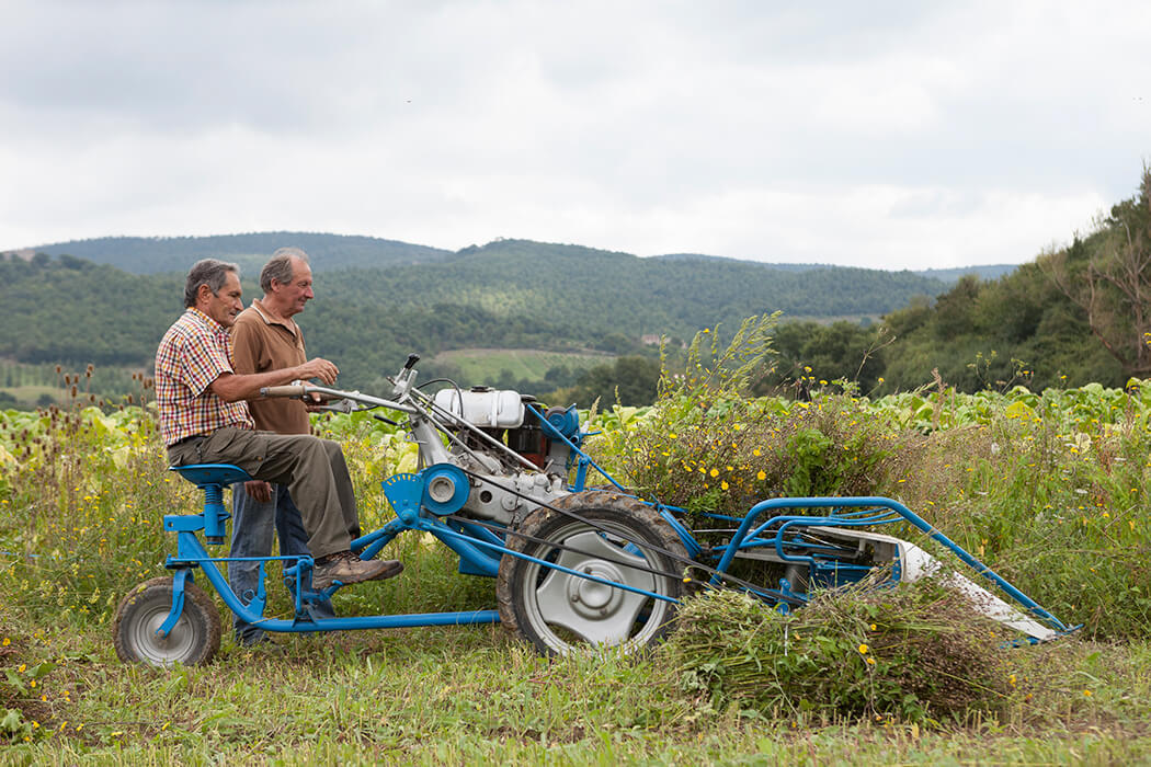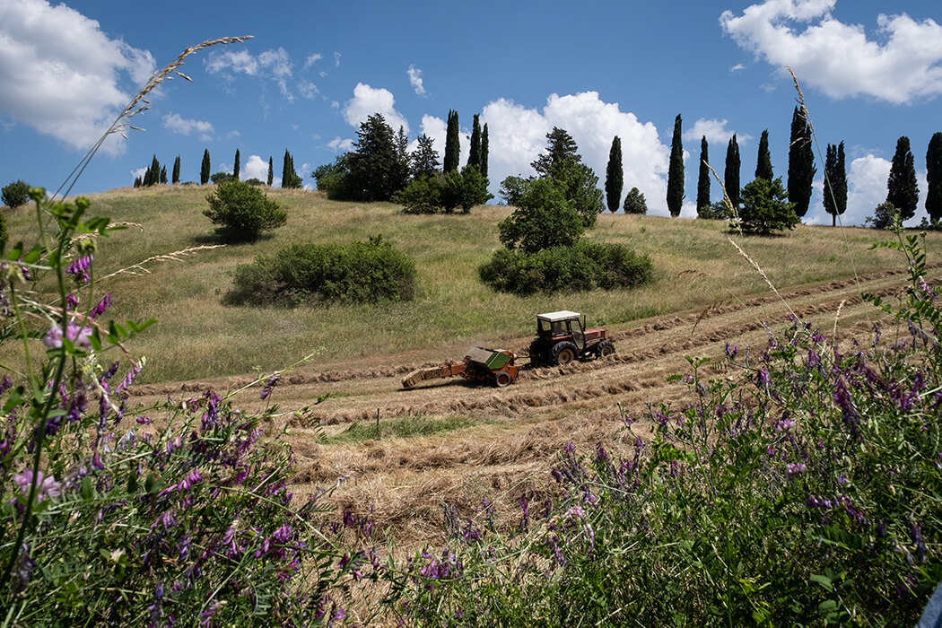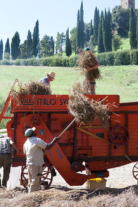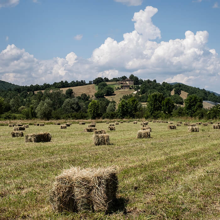 Historically, the Reschio Estate had been farmed by hand along terraces immediately surrounding the fifty farmhouses. Tobacco was cultivated, some food crops, olive groves and, mulberry trees to feed the silk worms resident in the castle and a few head of cattle. When the land was abandoned in the late 1970’s, it was left fallow until the Bolza family acquired the Estate in 1994. It was important that the agriculture chosen reflected the family’s ethos of conserving and preserving the land, letting progress evolve in an organic way and always in ways that would complete the circle. Nearly three decades on, we grow all the grain required for the horses’ feed, sufficient hay for their, and our chickens’ needs. The vines and olive groves are managed efficiently and we make and bottle wines for our own Estate label as well as for some of our House owners. We grow wheat which is taken to a nearby water mill and the flour returned in great sacks for use in Reschio’s restaurant kitchens. It is important to us to reduce the food kilometres, growing ingredients and buying from our near neighbours. It tastes better and just makes better sense