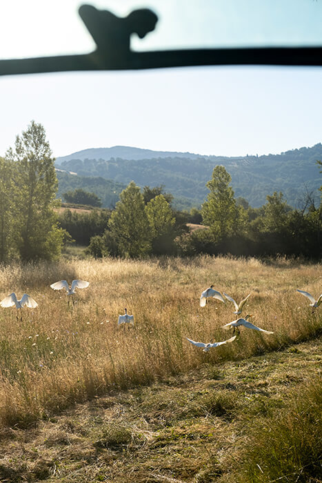 Agriculture is essential for feeding animals and humans, but it can be employed sensitively, ensuring that the land is fed and restored. It is for this reason that crops are rotated and our composting has become such a massive undertaking, dug into the soil throughout the Estate. As Reschio has such a variety of weather within its 1500 hectares, we have three weather stations feeding back information to enable us to work with nature to benefit fields in the fertile valley and ensure treatments carried out to the vines are done at the optimum time