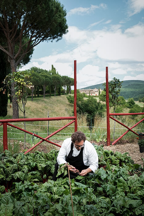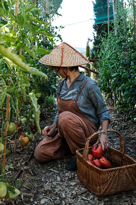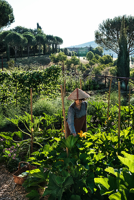 It was an enormous sense of pride the first year we closed the circle on our organic wheat crop. Fertilising the soil with our compost and animal manure, the stalks after harvest are used as bedding for the chickens. Some grain is held back as animal feed, with the remainder ground in an ancient stone water mill nearby. The flour is returned to Reschio in paper sacks, transformed by our chefs into cakes, bread and pasta