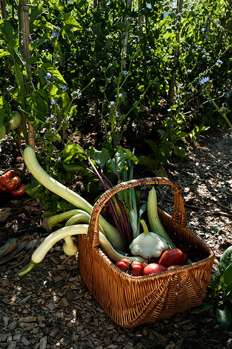 The sheer joy of meadering through our kitchen garden with its abundance of colour and texture, must have a health benefit. Many of the varieties grown are historic or unusual providing seeds that are replanted in subsequent years Flowers, herbs and vegetables are mixed together, each benefitting the other and when they fruit, our chefs are seen amongst the foliage choosing the tastiest produce for their seasonal recipes