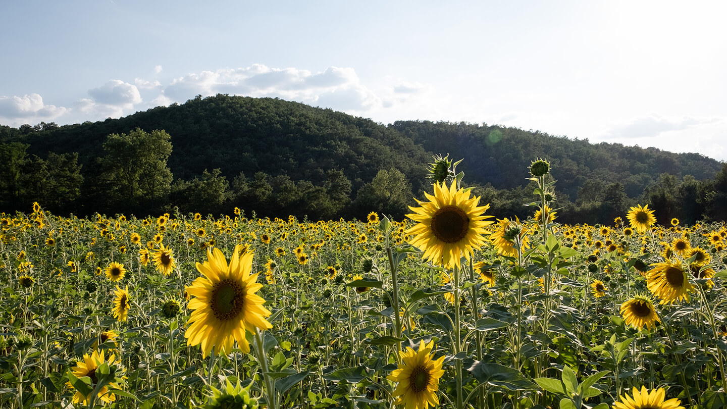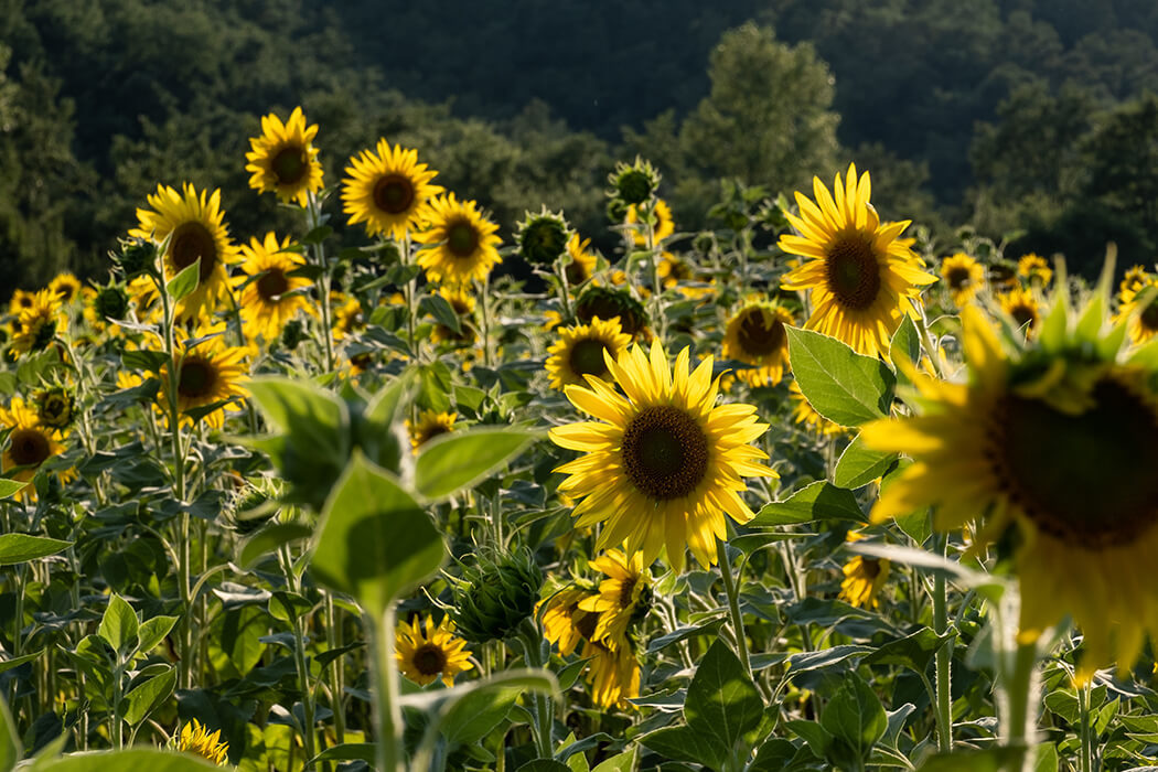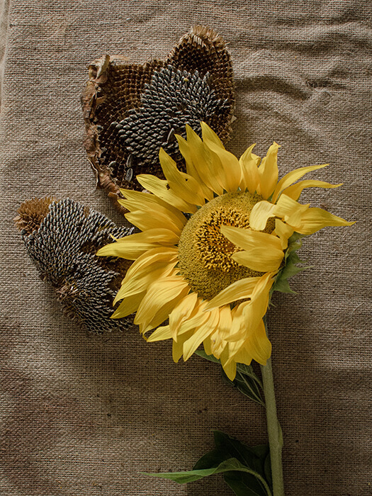 Evocative of hot summer days, fields of sunflowers track the sun as it moves through the sky. Producing edible seeds and oil they are not just an excellent food source, but their roots too, are essential in de-toxing the earth