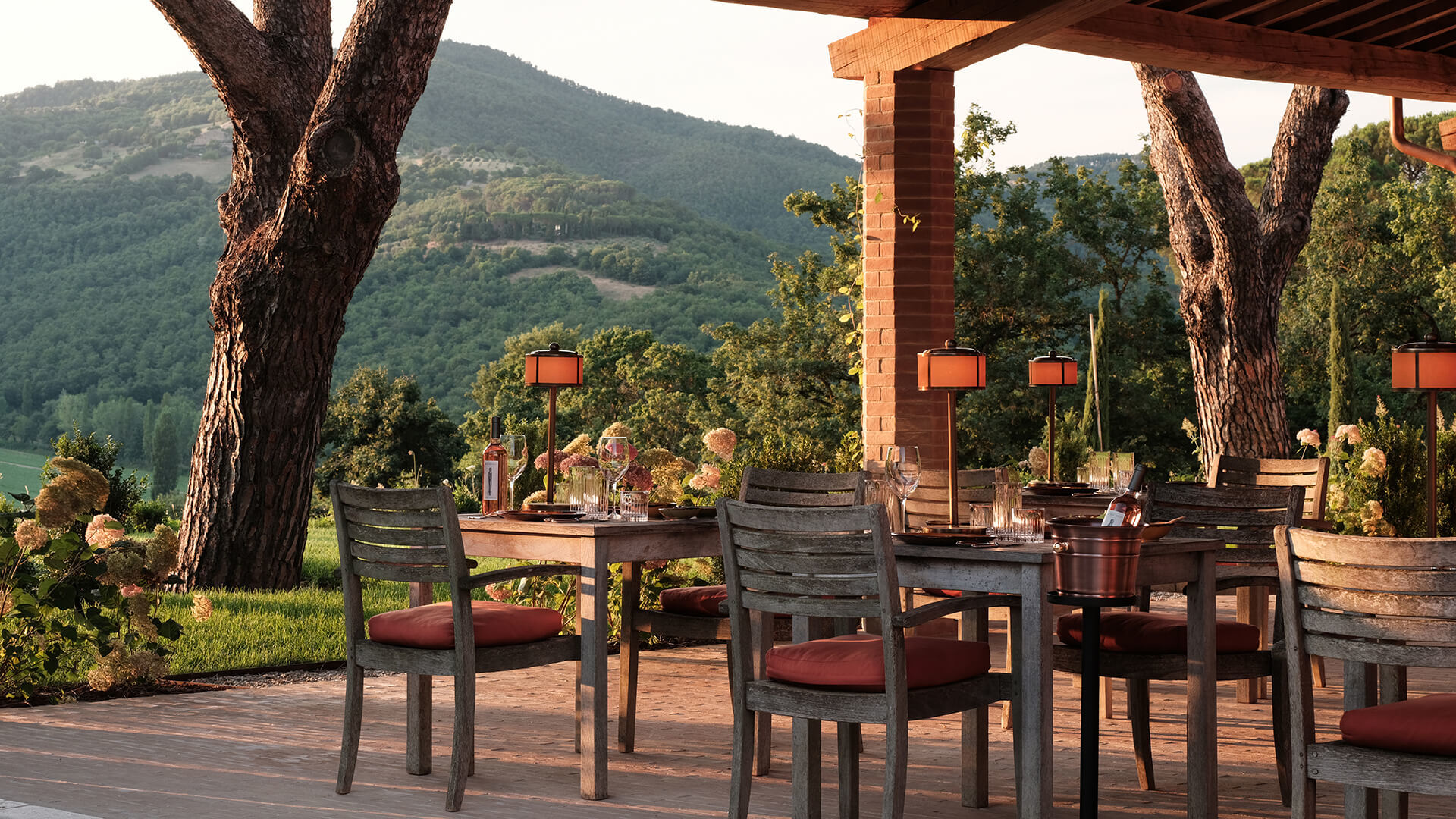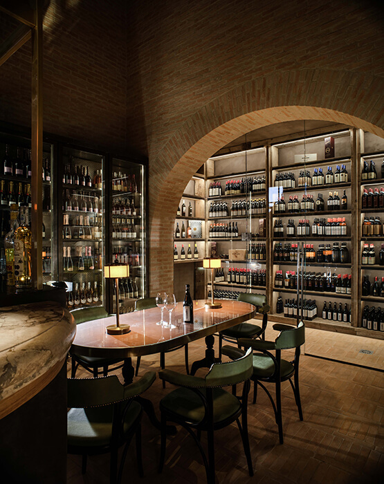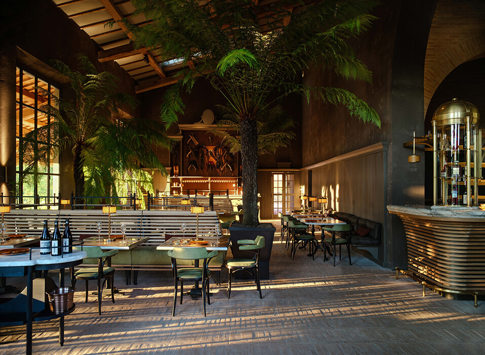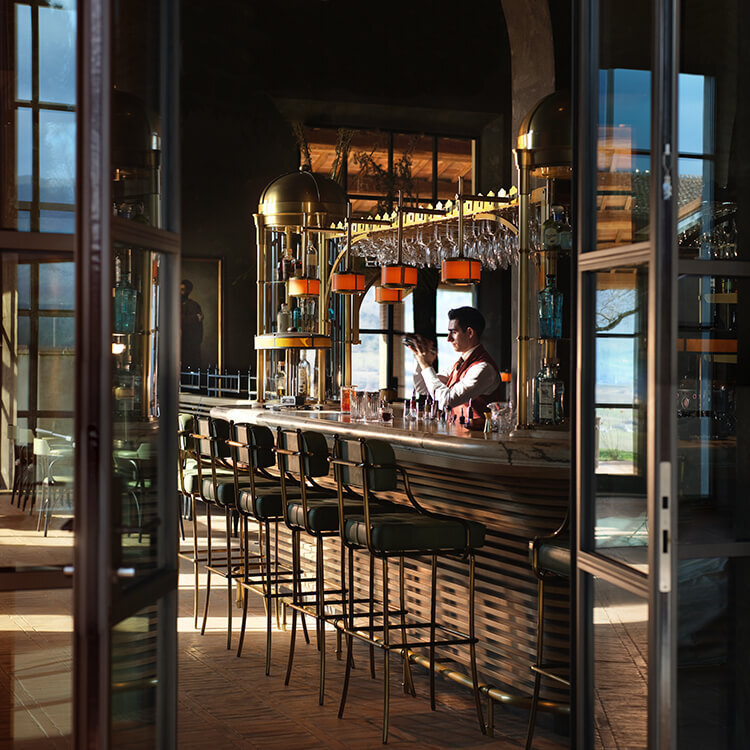 The centrepiece of the restaurant, however, is undoubtedly the ‘Bar Centrale’. Almost an artwork in its own right, the bar represents the perfect union of Benedikt’s design vision combined with the master craftsmanship of Reschio’s own woodworkers, blacksmiths, and stonemasons. Exuding an air of old-world Italian glamour, the bar has become the natural meeting place for those on the Estate at different times of the day. Whether calling in for a macchiato in the late morning or enjoying a Negroni in the evening, the bar is the perfect backdrop to any stay at Reschio