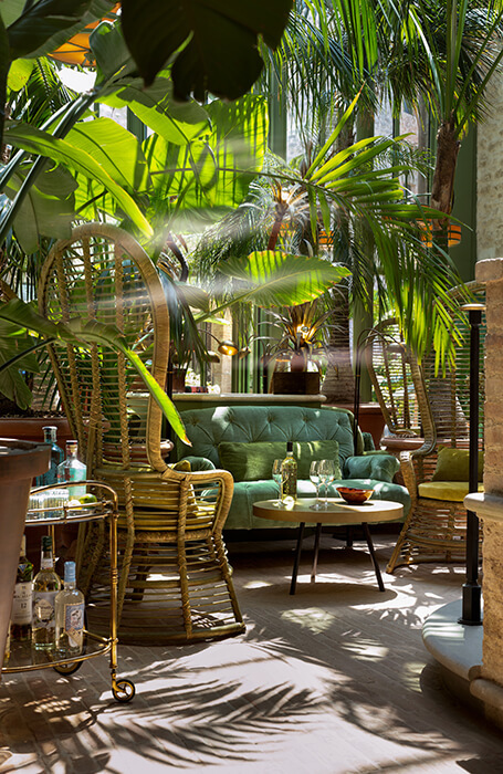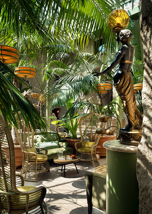 The wrought-iron columns and glass ceiling create an exotic fin-de-siècle space, with an air of Agatha Christie mystery (but without the murder). On arriving at the Castello, it is a perfect first port of call. A place to take in an invigorating negroni, while also absorbing the majesty of the castle’s walls from within. Pluck a book from our library and sit back with another icy glass of something delicious