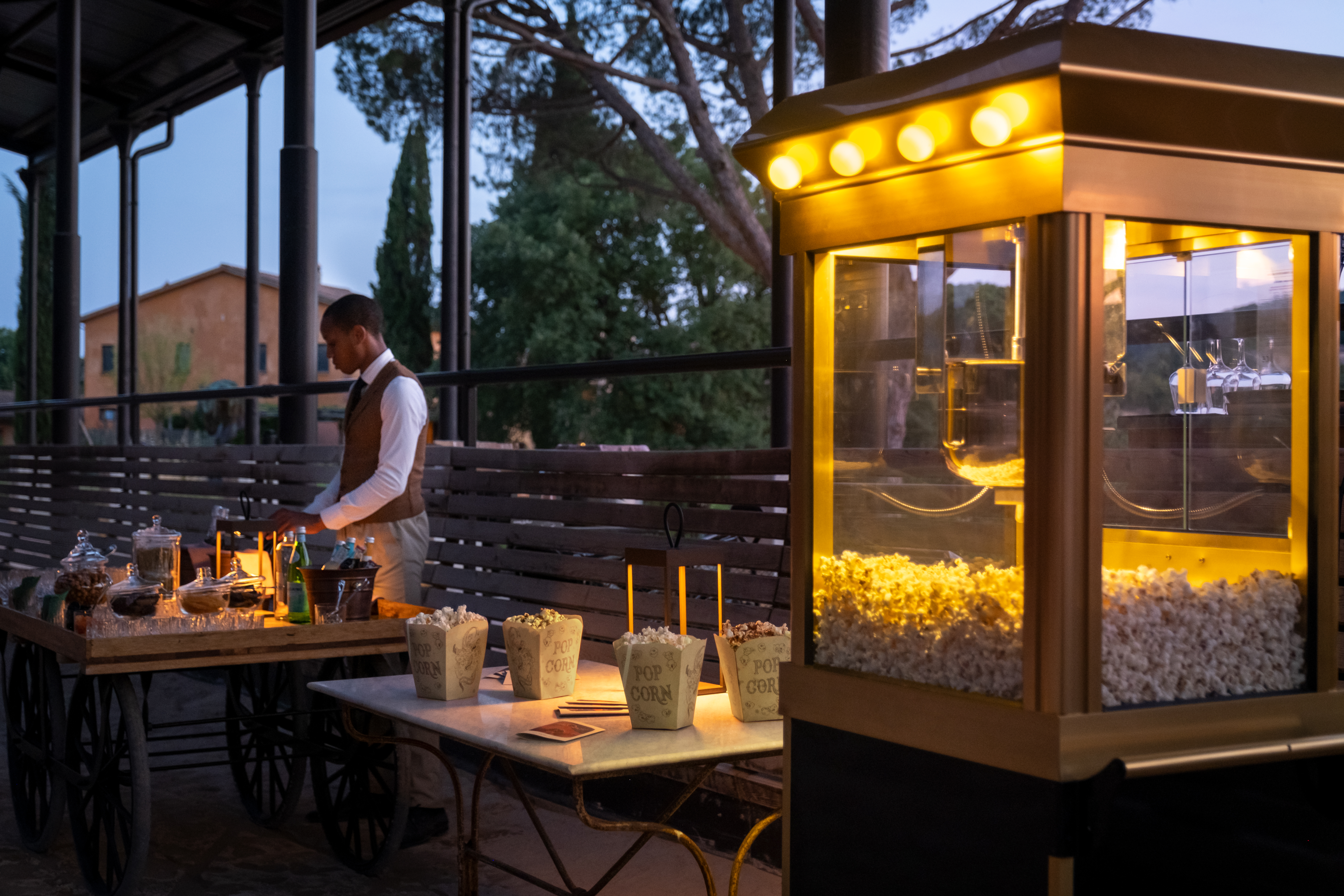 Once a week, our open-air cinema comes to life in the sand-filled Teatro Equestre. Settle into your deckchair with pizza, popcorn and drinks served at your seat, as the projector flickers on at sunset. From Italian classics to new releases, the selection changes weekly — and yes, you can even book a private screening of your favourite film